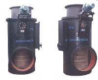三、電動收球網(wǎng)  該型號的收球網(wǎng)由筒體、柵網(wǎng)板、電動推桿、螺旋輸送機構(gòu)等部件組成,收球時,柵網(wǎng)板呈“V”型,膠球雜物及水垢等沿柵網(wǎng)板表面下滑到收球網(wǎng)底部,并被螺旋機構(gòu)強制送到膠球引出管,由膠球泵抽吸至裝球室進行下一輪清洗。不收球時,利用電動推桿,曲柄機構(gòu)使柵網(wǎng)板呈“A”型,此時既可以減小水阻,又可以利用水流對柵網(wǎng)板進行反洗,使遺留在柵網(wǎng)板上的雜物被水流沖去,保證收球效率。 收球網(wǎng)工作原理:新型收球網(wǎng)是在相應的管道中設置了一個A型柵格網(wǎng),上部為進水端,網(wǎng)板將整個管道截面全部遮擋,收球工作由此開始。收球網(wǎng)的網(wǎng)板、主軸、卡軸塊及緊固件等所有過流部件均可采用優(yōu)質(zhì)不銹鋼。A型柵格網(wǎng)的兩片網(wǎng)板由兩根轉(zhuǎn)軸轉(zhuǎn)動,在非運行工況時網(wǎng)板可被旋轉(zhuǎn)到一定角度,形成與水流平行的H型結(jié)構(gòu)。H型結(jié)構(gòu)使水流對網(wǎng)板進行反沖洗,可清除網(wǎng)上雜物及減少水阻,并解決老式收球網(wǎng)積球卡球的問題,使收球率達94%以上。在投球運行時將網(wǎng)板轉(zhuǎn)回到原來的A型結(jié)構(gòu)位置上。主要型式有手動(小管徑)和電動(大管徑)兩種供選用。即循環(huán)水管徑小于DN700的可選用手動單板型收球網(wǎng),當循環(huán)水管徑大于DN700可雙板分流型收球網(wǎng)。 四、電動裝球室  裝球室的特點是設計有足夠的容積,以保證海綿膠球在裝球室內(nèi)有回旋的余地。其中膠球斗、切換閥,單向閥均采用耐腐蝕的不銹鋼材質(zhì)。由于在裝球室中設計有獨特的單向閥裝置,從而取消了原來的電動門。進而簡化了膠球自動清洗系統(tǒng)及運行操作;便于實現(xiàn)自動控制,提高了運行的可靠性;提高了系統(tǒng)的收球率。 在膠球自動清洗系統(tǒng)投入運行前,應將裝球室的切換閥放在收球位置,在膠球斗內(nèi)添加足夠數(shù)量的海綿膠球( 裝球量為凝汽器單程銅管數(shù)的10%),利用裝球室的出口球閥和排氣閥將裝球室充滿水。然后啟動膠球循環(huán)泵,通過觀察窗,看膠球在裝球室內(nèi)回旋情況,如發(fā)現(xiàn)室內(nèi)在有氣泡存在,可繼續(xù)進行排氣。一切正常后,將切換閥手柄緩慢轉(zhuǎn)到運行位置,海綿膠球通過切換閥投入到系統(tǒng)中,進入工作狀態(tài)。