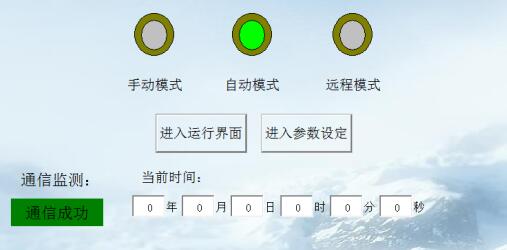 圖1 主頁 2)參數(shù)設定:控制柜使用前,應先設定系統(tǒng)自動運行所需的參數(shù)。輕按圖1中的“進入?yún)?shù)設定”按鈕,進入?yún)?shù)設定界面,如圖2所示。
